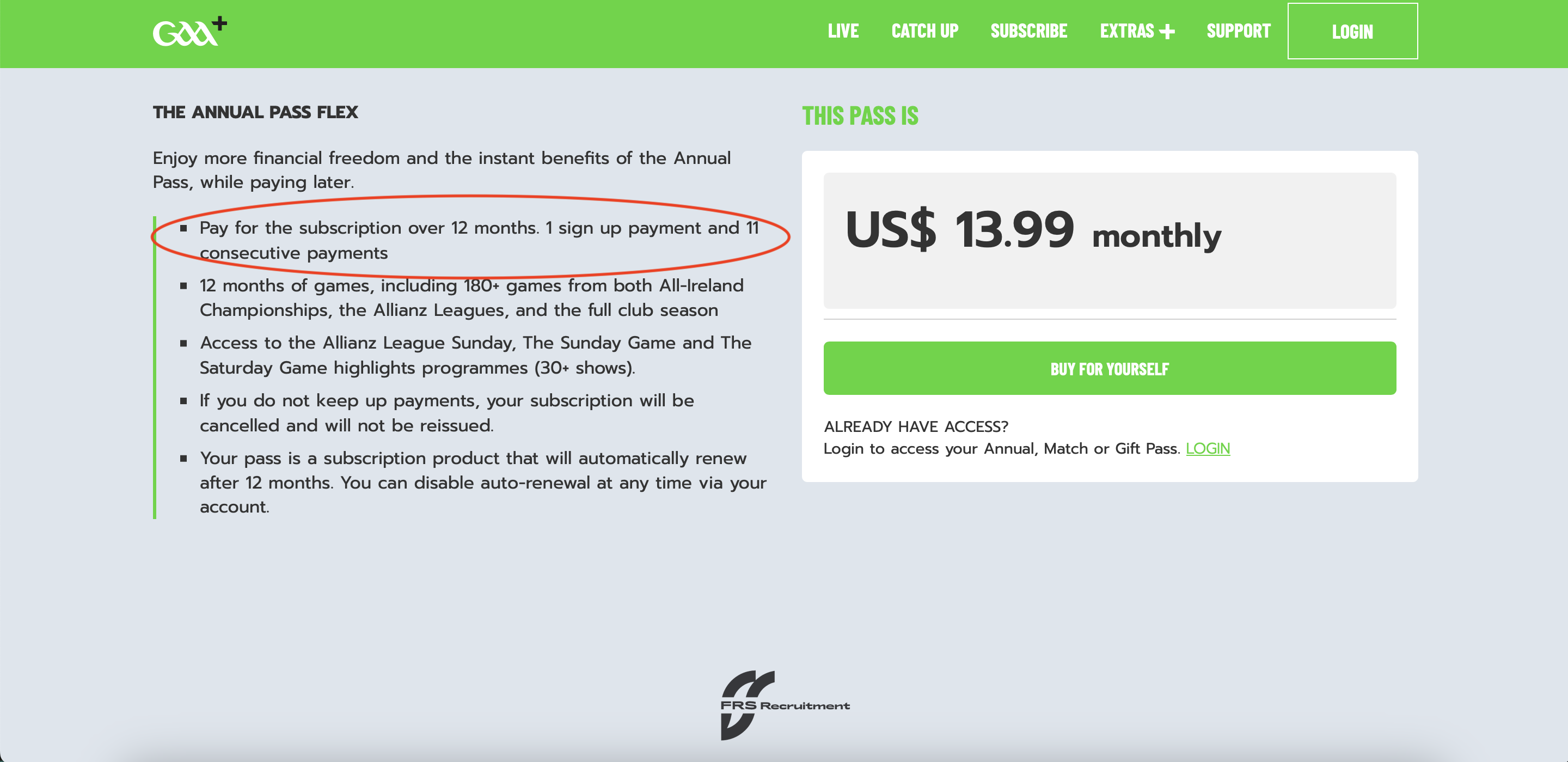 As would have been clearly outlined in the description of your package upon purchase (see below), this pass option allows holders to spread the cost of their yearly subscription across the year in 12 monthly instalments as opposed to one large upfront payment (as with the regular Annual Pass subscription).